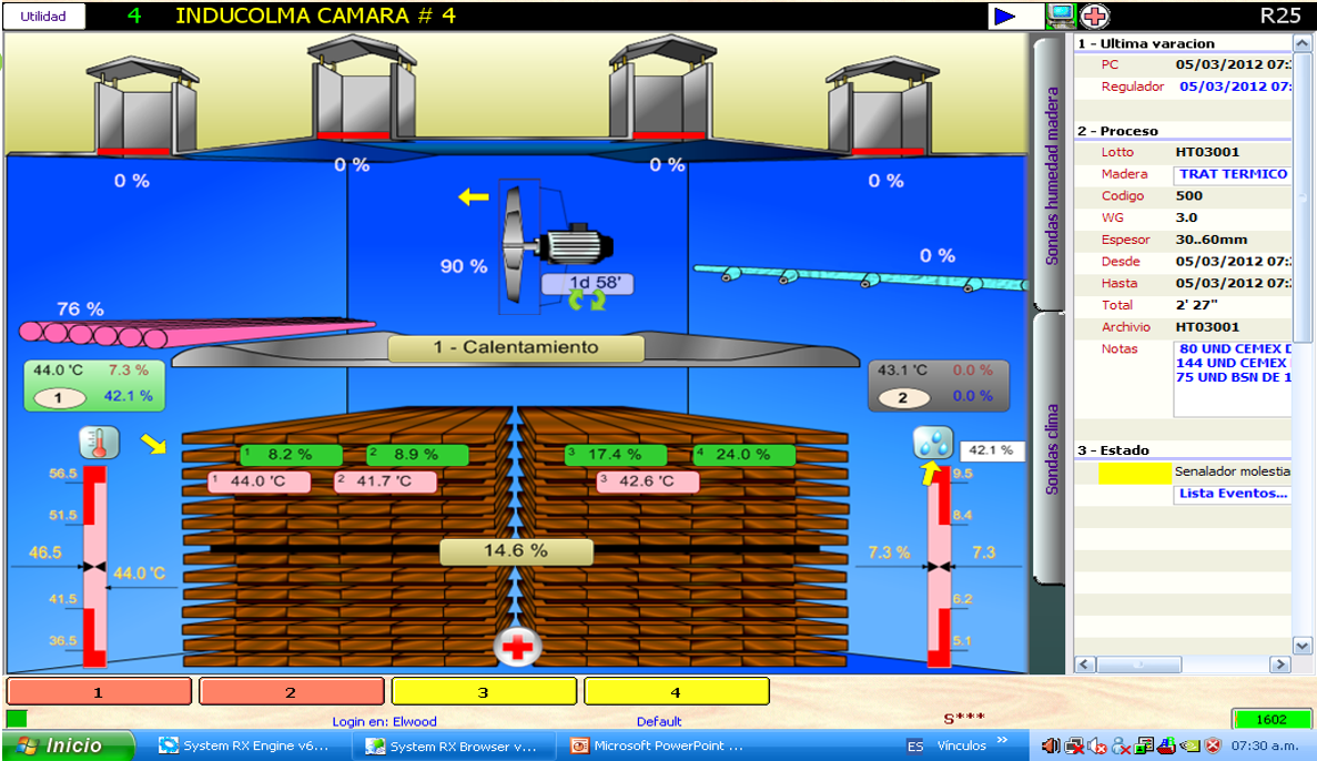 Inducolma cuenta con modernos hornos industriales que operan con el sistema de aire forzado, los cuales permiten secar la madera para lograr su preservación y aumentar su durabilidad. Contamos con una gran capacidad de secado, aproximadamente 220 m3 ó 2400 estibas de 100 X 120 cm. Contamos con tecnología italiana de punta que nos permite modificar los programas de secado dependiendo el tipo de madera y otros factores determinantes del proceso.